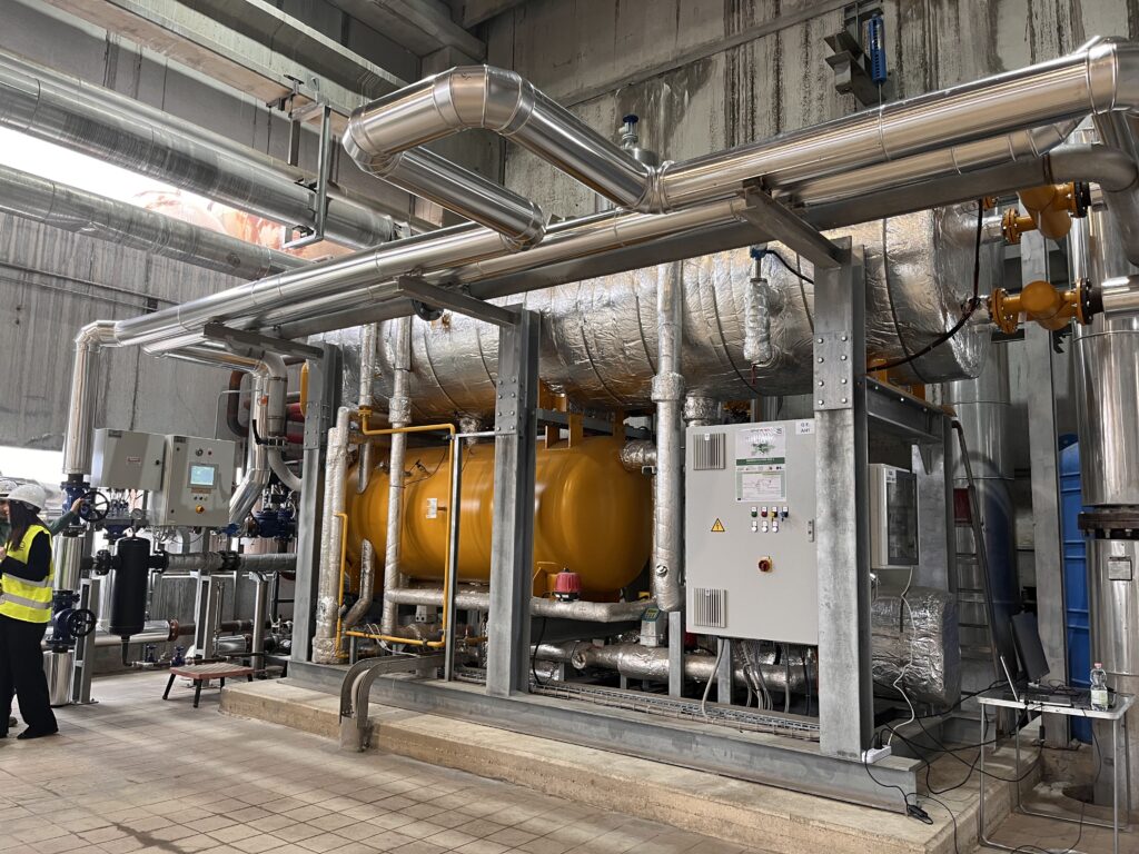 The installation was completed in July 2025, with commissioning beginning in September 2025. The process started with cold commissioning — verifying all connections, sensors, and control systems — followed by hot commissioning, where the AHT was activated using available waste heat and cooling water. Initially, low-pressure steam was generated only in the flash tank, allowing engineers to confirm stable operation of the upgraded heat water flow and steam production. Later, the full system was tested, including the thermocompressor, to reach the target medium-pressure steam conditions.